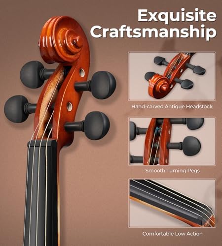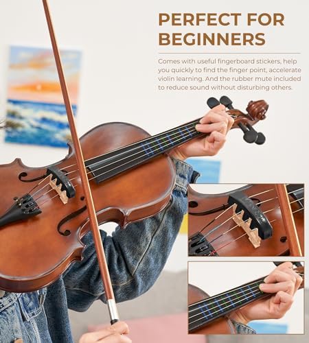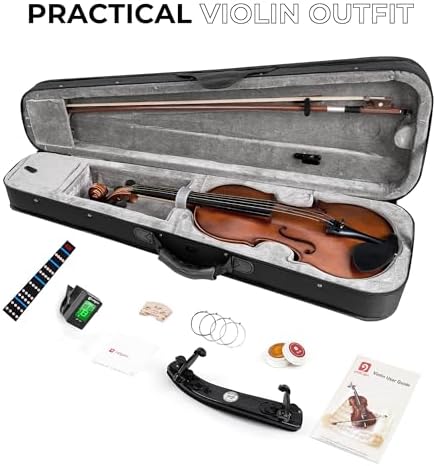 The lightweight hard case provides optimal protection for easy and safe transport. This beginner violin set comes complete with essential accessories: a digital tuner, violin case, guide book, rosin, note stickers, shoulder rest, extra strings, violin bow, violin mute, and a cleaning cloth. With everything included, you save time and money on accessories—simply unbox and start playing!