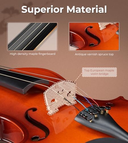Crafted with a solid spruce top and maple neck, back, and sides, this 3/4 sized violin delivers a warm and beautiful sound with consistent quality. The antique varnish finish adds an exquisite touch, making it not just an instrument, but a piece of art. Its 3/4 size is ideal for beginner students, making it perfect for children starting their musical journey, whether for boys or girls.